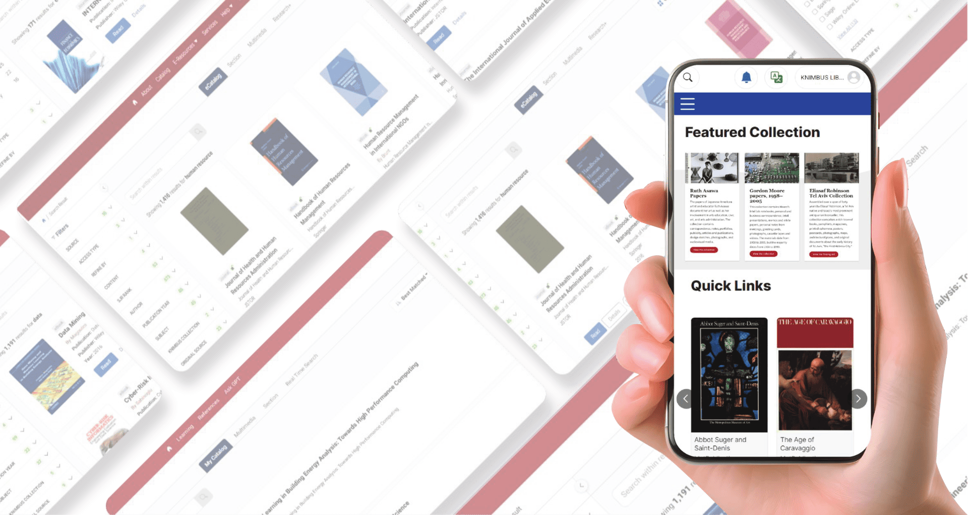 A-Z Catalogs. Integrate all your Subscribed Resources, Institutional Repositories, Web OPAC, Lib Guides, Links and Knimbus Curated Open Access Collections.